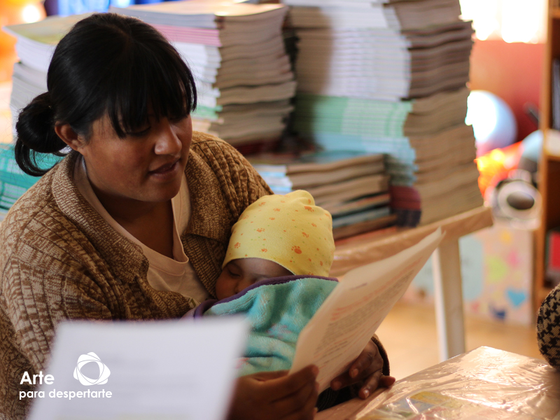 Madre de familia leyendo en voz alta