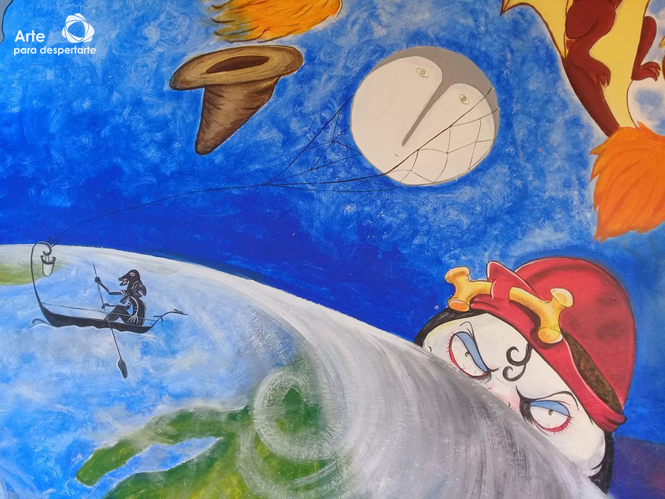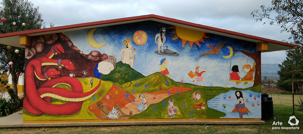 Pinta de mural literario en primaria de Hidalgo